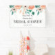 Personalisiertes Blumenbanner für ein elegantes Brautparty. Party mit Blume in Grün und Pfirsich oder Lachs. Die Dekoration im Hintergrund für Innen- und Außenanwendungen. Besuchen Sie unsere Kollektion, um mehr koordinierende Elemente zu sehen, die dieses Design für Ihre besondere Veranstaltung passen.