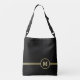 Elegantes, Personalisiertes Monogramm auf schwarz Tragetaschen Mit Langen Trägern
