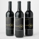 Elegantes, Personalisiertes Monogramm auf schwarz Weinetikett
