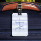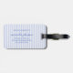 Reisen Sie stilvoll mit diesem eleganten personalisierten Gepäckanhänger, der jeden Reiseaufenthalt mit einem Hauch von Chic versüßt. Mit einem weichen blau-weißen gestreiften Hintergrund zeigt eine Seite Ihre Initialen und Ihren Namen in einer fantasievollen Schriftart, während die Rückseite Platz für Ihre Kontaktdaten bietet, um während der Reise ein gutes Gefühl zu haben.