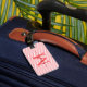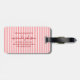 Reisen Sie stilvoll mit diesem eleganten personalisierten Gepäckanhänger, der jeden Reiseaufenthalt mit einer eleganten Note versieht. Mit einem weichen rot-weiß gestreiften Hintergrund zeigt eine Seite Ihr Monogramm und Ihren Namen in einer fantasievollen Schriftart, während die Rückseite Platz für Ihre Kontaktdaten bietet, um während der Reise beruhigt zu sein.