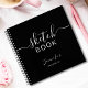 Schwarz-Weiß-Elegantes Personalisiertes Sketchbook mit Ihrem Namen in Hand Lettered Script Schriftart Typografie. Elke Clarke© Fügen Sie Ihren Namen, Ihr Monogramm oder Ihren Text über das Menü "Anpassen" hinzu.