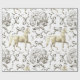 Monochrome Toilmuster mit Vintagen Illustrationen eines weißen arabischen Pferdes, üppige Hydrangea reich dekoriert mit Bugs-Krawatte, super trendige und prächtige Design für alle Pferd- und Reitfreunde, Bachelorette's, Mädchengeburten, 16 . Geburtstag, Abschluss, Feriengeschenkverpackung oder andere Gelegenheiten.