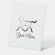 Elegantes Pferd in schwarzer Farbe Pedestal Schild Vorlage ideal für Pferdepflege, Pferdetraining, Tierärztliche Dienstleistungen. Dieses Design ist vollständig anpassbar - Sie können jedes Element auf der Karte, einschließlich der Pferdefarbe, ändern.