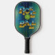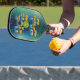 Pickleball Paddle Design mit Text und Mustern erstellt von Edward Eksi. Handgezeichnete Abbildungen.