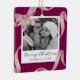 Elegante Weihnachtsschmuck mit atemberaubendem Weinhintergrund, mit einem Foto-Hauptwerk, das von einem schönen rosa Aquarellbänder und Bogen geschmückt ist. Füllen Sie bitte Ihren Familiennamen, das Jahr und die Frohe Festtage "fröhliche Weihnachten" aus.