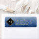 Erleben Sie mit diesen eleganten und stilvollen blauen und schwarzen Monogramm-Rücksendeadressen-Aufklebern die Aufmerksamkeit. Dieses einfache und raffinierte Farbverlauf mit einem modernen, rautenförmigen Rahmen mit Goldrahmen kann durch das Hinzufügen eines mit Monogramm Anfangs personalisiert werden. Flachbild, NICHT metallisch.
