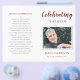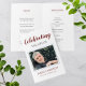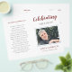 Dieses elegante Rot-Foto-Gedenkprogramm ist eine wunderbare Möglichkeit, sich an einen geliebten Menschen während der Feier des Lebensservice zu erinnern. Wenn Sie sie empfangen, falten Sie sie einfach in der Mitte zusammen und bieten sie den Festgästen an.