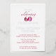 Diese einzigartige Party Einladung zum 60. Hochzeitsjubiläum mit einer einzigartigen Blumentypografie. Personalisieren Sie diese hübsche, elegante Jubiläumseinladung mit den Namen des Ehepaares, Veranstaltungsort, Party und nach Bedarf bearbeitbareren Texten auf der Rückseite. Ich habe diese originale, echte Silberfolie-Karte für Sie erstellt. Alle zeitgenössischen Typografien können bearbeitet werden. "Celebrating 60" ist in einem rosa Blumendesign aus einem Foto einer Rose Blume geschrieben. Die Vorderseite der Karte ist weiß mit dunkelrosa Schrift und ausgewähltem Silber-Silber-Drehbuch. Der Rücken ist kräftig, tiefrosa. Einfache schöne und leicht bearbeitbare Jubiläumsvorlage. In der Kollektion finden Sie passende Jubiläumsdekoration und Party-Favoriten.
