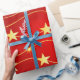 Elegantes Red Gold Weihnachts-Star-Urlaubsmuster Geschenkpapier