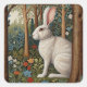 Elegantes Retro-Boho weißes Kaninchenwald mit Blüt Quadratischer Aufkleber