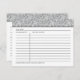 Die schlichte und elegante Küchenrezeptkarte ist mit einem hübschen, grau-weiß-blumengeschmückten Schnittmuster mit karkohlegrauen Linien und Texten versehen.
