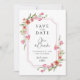 Elegantes romantisches Foto mit Flora und Fauna zum Hochzeitsfeiern Das Date Card Einladungen mit romantischem Charme aus der alten Welt, mit der Eleganz der Regency-Zeit mit rosa, orangefarbenen, roten, blauen und gelben Aquarellfarben, die mit handbemalten Pflanzen geschmückt sind. Fügen Sie Ihren eigenen Text in elegantem, modernem Kalligrafieschrift hinzu. Für Sie entworfen von Evco Studio www.zazzle.com/store/evcostudio