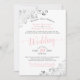 Verzweifelte Zeiten erfordern verzweifelte Maßnahmen! Aufgrund der anhaltenden Notlage im Gesundheitswesen finden Paare kreative Wege, ihre Hochzeiten zu feiern. Diese schöne Einladung wird Ihre Gäste einladen, virtuell an einem Livestream Ihrer Hochzeit teilzunehmen. Es zeichnet sich durch ein schlichtes und dennoch elegantes Design aus, das mit laky rosa und grauem Schriftzeichen auf weißem Hintergrund und fein silbergrauem Imitat-Filigree in den Ecken aufwartet. Weil Liebe anhält!