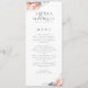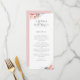 Die Einrichtung besteht aus einer rosafarbenen, rosafarbenen Tornflora mit Eukalyptusblättern und einem Sprinkle aus handgezücktem Grün sowie den Namen der Braut und des Bräutigams und deren Hochzeitstag, gefolgt von den Menüpunkten, die beim Empfang serviert werden. Der Text ist mit der bereitgestellten Vorlage leicht personalisiert. Auf der Rückseite des Menüs ist ein sanftes, rosafarbenes Rosa zu sehen. Wenn Sie eine Designfrage haben oder dieses Design auf einem anderen Produkt sehen möchten, kontaktieren Sie mich bitte unter jschmidtdesignworks@gmail.com. Design © Judith Schmidt.