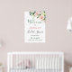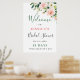 Begrüßen Sie Ihre Hochzeit mit Boho Brautparty Poster in eleganten, rosafarbenen Blume mit Boho Poster, mit üppiger botanischer Vegetation und weißen Blume, "willkommen zu uns glücklich immer danach", Ihren Namen, und Hochzeitstag in einer schicken Mischung aus modernen Blocks und handgeschriebenen Kalligrafietypen.