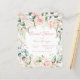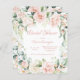 Eleganter weißer Hintergrund mit rosa und elfenbeinfarbenen Rose, floraler Aquarellrahmen und fließender Vegetation von Blätter & Weinreben rund um die extravagant koordinierende rosa Drehbuch Braudusche Einladung auf einem Blatt Papier für diejenigen, die ein Budget. Das ist eine schöne Einladung. Perfektes Brautparty für jede Hochzeitszeit.