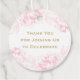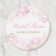 Elegante, runde Hochzeitsmarken sind mit einem rosa und goldfarbenen Blumendesign mit Peony-Blume und einem eigenen "Brautparty Ehre"-Text versehen, der mit dem Namen der Braut personalisiert werden kann, und einer Danksagung auf der Rückseite.