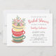 Laden Sie Ihre Brautparty-Tee-Party mit einer niedlichen und schicken Einladung ein, auf der sich eine schöne Teetasse und ein Haufen Blume befinden. Personalisieren Sie es mit Ihren eigenen Daten.