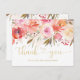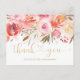 Dieses elegante Brautparty bedankt sich bei der Postcard mit handgemalten Aquarellfarben-Rose in Rosa, Rosa und Pfirsich. In goldener Schrift, die von einem Herzen in der Mitte betont wird, lautet "Danke" mit Ihrem Namen unten, um zu personalisieren. Auf der Rückseite der Postkarte befindet sich ein Bereich für eine individuelle Nachricht und Unterschrift, die durch einen oberen Rand des Grüns hervorgehoben wird. Entworfen von der Künstlerin Susan Coffey.