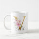 Elegantes Rosa Floral Gold Letter Monogram V Kaffeetasse