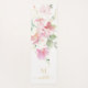 Eine moderne Monogramm-Konstruktion mit einer zarten, rosa, floralen Aquarellfarbe mit Goldschrift und Serifentypografie auf weißem Hintergrund. Das Monogramm und der Name können leicht personalisiert werden.