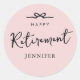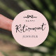 Mit diesem femininen Retirement Party Round Sticker Design kreieren Sie elegante Abschieds-Gastgeschenk-Etiketten. Dieser rot-rosa Kreis Gunst-Aufkleber ist ideal für Geschenke oder Dekoration bei einem Ruhestueck oder Abschiedsessen Party für einen Mitarbeiter oder Mitarbeiter. Mit einem modernen Design mit handgeschriebenem Schriftart und handgezeichnetem Bugmotiv ist dieser klassische Gastgeschenk-Aufkleber vollständig anpassbar, sodass Sie ihn auf den Anzug Ihrer Marke und Veranstaltungsästhetik zuschneiden können.