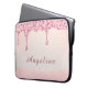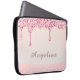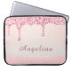Tragen Sie Ihre Technik im Stil mit diesem eleganten rosa Glam Glitzer Tropfen Spitzen Brautparty Laptop Ärmel. Das Design ist mit kaskadierenden Imitaten, rosa Glitzer-Tropfen und einem weichen, glänzenden Hintergrund mit tönenden Schimmer Akzenten für eine luxuriöse, moderne Oberfläche ausgestattet. Ein dezentes Spitzen-Detail am Boden verleiht dem Ganzen eine Touch von feminininem Charme. Dieser Ärmel ist perfekt für die Schule, die Arbeit oder den Alltag geeignet und kann mit einem Vornamen personalisiert werden. Damit ist er ein durchdachtes Geschenk für Geburtstage, Schulabgänger oder stilvolle Zuhause-Büroaufrüstungen.