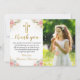 Elegantes rosa Korallenflor 1. Heiliges Kommunion Foto Danke Karte