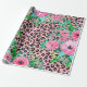 Elegantes rosa Leopard Print und Blumendesign Geschenkpapier