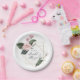 Elegantes Rosa Rose-Floral-Gold-Rahmen-Brautparty Pappteller