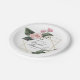 Diese eleganten Teller aus Blumenpapier ergänzen Ihr Brautparty perfekt. Dieses Design zeichnet sich durch einen geometrisch goldenen Rahmen aus, der durch handbemalte, rosa und lila Rose mit grüner Wasserfarbe hervorgehoben wird. Personalisieren Sie mit der Braut zu sein Name und Duschdatum in einer einfachen dunkelgrauen Typografie. Entworfen von Susan Coffey.