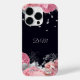 Ein exquisiter Bouquet aus rosa Rosen kombiniert mit silbernen Blätter und Verzierungen, um ein atemberaubendes Bouquet auf diesem Handy-Gehäuse zu machen. Die Bilder werden unten und oben auf einem dramatischen schwarzen Hintergrund platziert. Ihr Name oder Monogramm erscheint in der Mitte in Silbergrau.