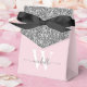 Girly Modern Elegant Blush Pink und Silver Glitzer Monogram Initial Name Signature Script Custom Personalisiert Gevor Box. Dieses Design mit Ihrem Vornamen in einem hübschen handgeschriebenen Stil Swash Schwanz Schriftart Signatur Typografie (oder Kalligrafie) mit Monogramm Initial, über Imitaten silbergraue Farbe Glitzer Block auf rot pink oder leicht Baby pink Hintergrund. Diese stilvollen weiblichen Geschenkboxen, die sich hervorragend zum Verteilen eignen, Geschenke, Gast-Geschenke und Leckereien während einer bevorstehenden Geburtstagsparty, GRILLEN, süßen 16 Geburtstag, Hochzeitsempfang, Babydusche, Junggeselinnen-Abschied, Brautparty, Jubiläum und vieles mehr.