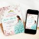 Elegantes Rosa und Aquamarine Quinceñera Einladung