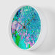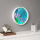 Die Gerahmte Wanduhr aus hellem Holz mit elegantem Rosa, Blau und Weiß-Limelight-Hydrangea mit Aqua, Lime Green, Navy Blue, Chartreuse, Türkis und Magenta Akzenten ist eine ruhige, nicht tickende Uhr. Das Ergebnis ist ein modernes, schönes, blumengeschmücktes Gemälde, das Sie zur Liebe bringen werden!