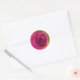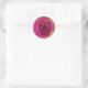 Chic rund Aufkleber / Umschlag Aufkleber in einem Farbverlauf rosa bis goldene Folie Blick Hintergrund. Die Grafik einer echt aussehenden rosa Rose schmückt die Mitte des Aufklebers. Anpassen, um jeden gewollt Text hinzuzufügen. Ein schöner Weg, Ihre Einladungen abzuschließen.