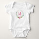 Elegantes Rosa und Monogramm mit Blumenreath Baby Strampler
