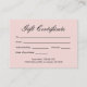 Elegantes Pastelrosa und Zickzack Geschenkgutschein in Schwarz. Salon und Wellness-Center Geschenkkarten.