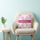 Elegantes Kissen mit rosa und weißer Kirschblüte mit rosa und grauen Streifendetails. Anpassen mit eigenen Texten, Namen oder Initialen.