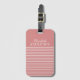 Elegantes rosa, weiß gestreiftes Monogramm-Skript Gepäckanhänger
