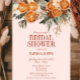 Diese elegante Dusche aus rosa Zitrusfrüchten und blühenden Brautbäumen lädt zu einem Besuch im blühenden Grün ein. Orangen in gebrannter Orange mit Zimtstäben und Herbstgeburt-Blume. Alle Texte können geändert werden.
