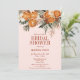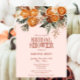 Diese elegante Dusche aus rosa Zitrusfrüchten und blühenden Brautbäumen lädt zu einem Besuch im blühenden Grün ein. Orangen in gebrannter Orange mit Zimtstäben und Herbstgeburt-Blume. Alle Texte können geändert werden.