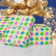 Elegantes rosafarbenes blaues Karo-Muster auf Gelb Geschenkpapier
