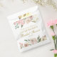 Dieses elegante Gastgeschenk aus blumengeschmücktem Brautparty ist mit hübschen Rosen und Pfannkuchen dekoriert. Eine reizende Ergänzung zu einer Hochzeitsfeier im Frühjahr oder Sommer, die in einem schicken antiken Goldskript geschrieben ist.