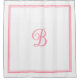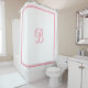 Klassischer und mit Monogramm Duschvorhang. Dieses Design verfügt über rosa, zweigrenzenlose Skriptmonogrammbuchstaben. Personalisieren Sie den Monogramm-Brief des Skripts mit Ihrem Lieblingsbrief. Dieser in Rosa und Weiß gehaltene Duschvorhang ist ein personalisiertes Geschenk.