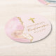 Elegantes Rosa und Goldmedaille zieren diesen hübschen personalisierten Untersetzer für die Christliche Zeremonie eines Mädchens Empfang. Mit einem Namen unter dem schönen Kreuz für eine schicke religiöse Party Dekoration.