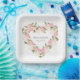 Elegantes rosafarbenes Wasser Namen Hochzeitsherz Pappteller