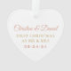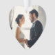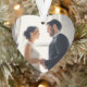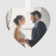 Elegantes, herzförmiges Weihnachtsschmuck für ein frisch vermähltes Paar mit einem Hochzeitsportrait auf der Vorderseite mit individuellem Skriptmonogramm und "Erste Weihnachten als Mr. & Mrs." Formulierung auf der Rückseite. Weiß, Rose Gold und Goldfarben auf der Rückseite können individuell angepasst werden.