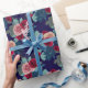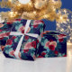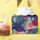 Elegantes Packpapier im Marineblau mit einem Blumenmuster gestreut über ihm. Rosen des Pfirsiches und des Rosas zusammen mit tiefroten Pfingstrosen tanzen in der Betten von Salbei-, tadelloses und tief BlauesBlätter.
